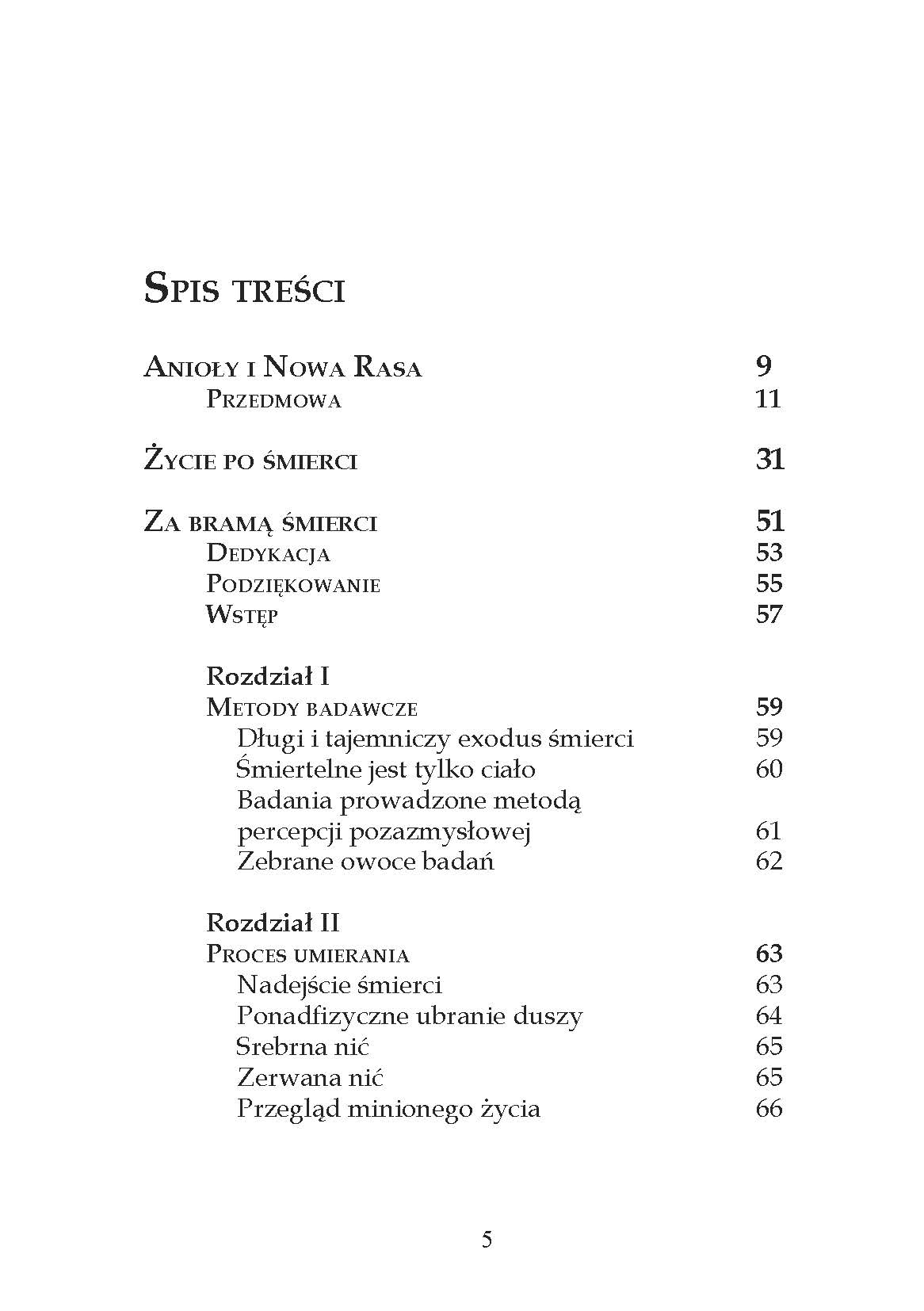 Muszę w tym miejscu oznajmić coś, w co być może trudno będzie uwierzyć, ponieważ jednak wiem, że to jest prawda posiadająca wielkie znaczenie dla tej pracy, muszę wam o niej opowiedzieć. Dotyczy ona tego świata, do którego odeszli nasi bliscy i do którego przejdziemy kiedyś sami, gdy przyjdzie czas. Nie jest to jednak jakaś nieznana nam kraina, bo odwiedzamy ją każdej nocy, gdy nasze ciała fizyczne zasypiają. Sen trafnie jest nazywany bliźniaczym bratem śmierci. Możemy pójść dalej i nazwać je tożsamymi, bo podczas gdy ciało fizyczne śpi, my budzimy się w ciele, którego będziemy używali po śmierci. Nasze sny są po części zagmatwanymi wspomnieniami z życia w tym świecie, do którego powracamy po przebudzeniu. Różnica pomiędzy snem a śmiercią polega na tym, że we śnie „srebrna nić” łącząca nas z ciałem fizycznym nie zostaje zerwana. Przerywa ją śmierć i jako że nic już nie łączy nas z fizycznością, nie możemy do niej powrócić. Nie trafiamy jednak do żadnej obcej krainy, budząc się po śmierci, znamy ją bowiem dobrze i często już w niej mieszkamy i pracujemy.